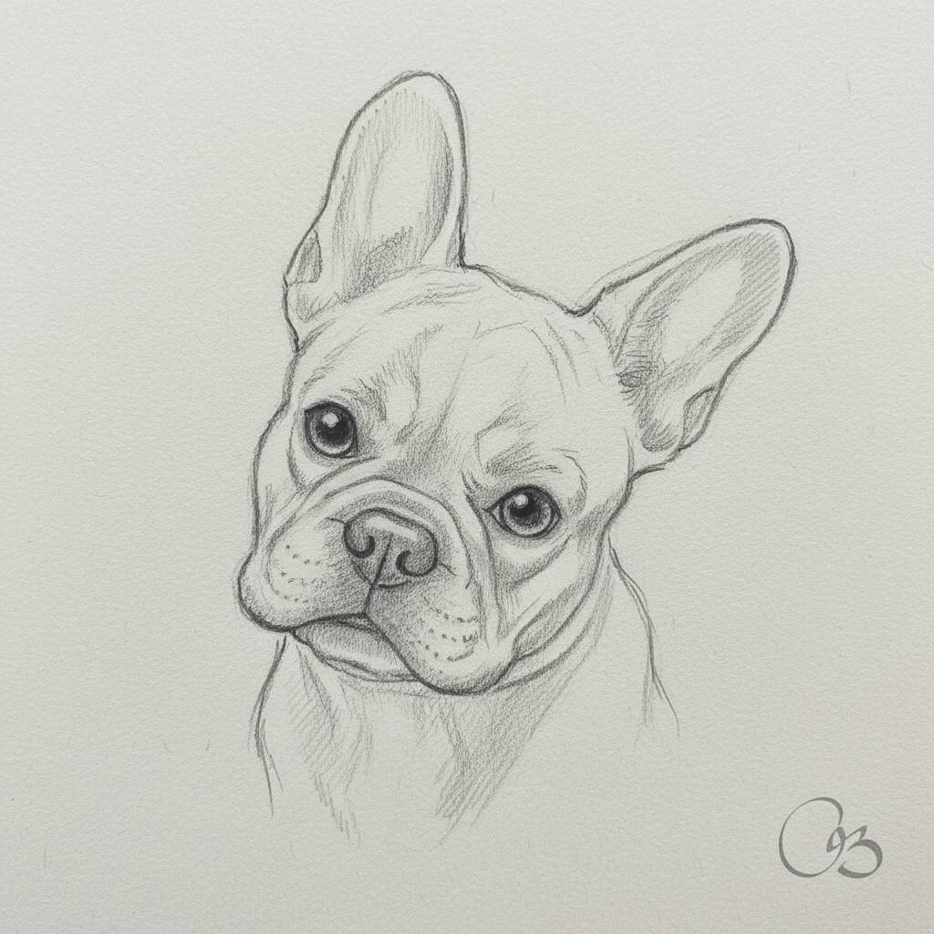 Detailed drawing of a French bulldog, ideal for those looking for inspiration to draw.
