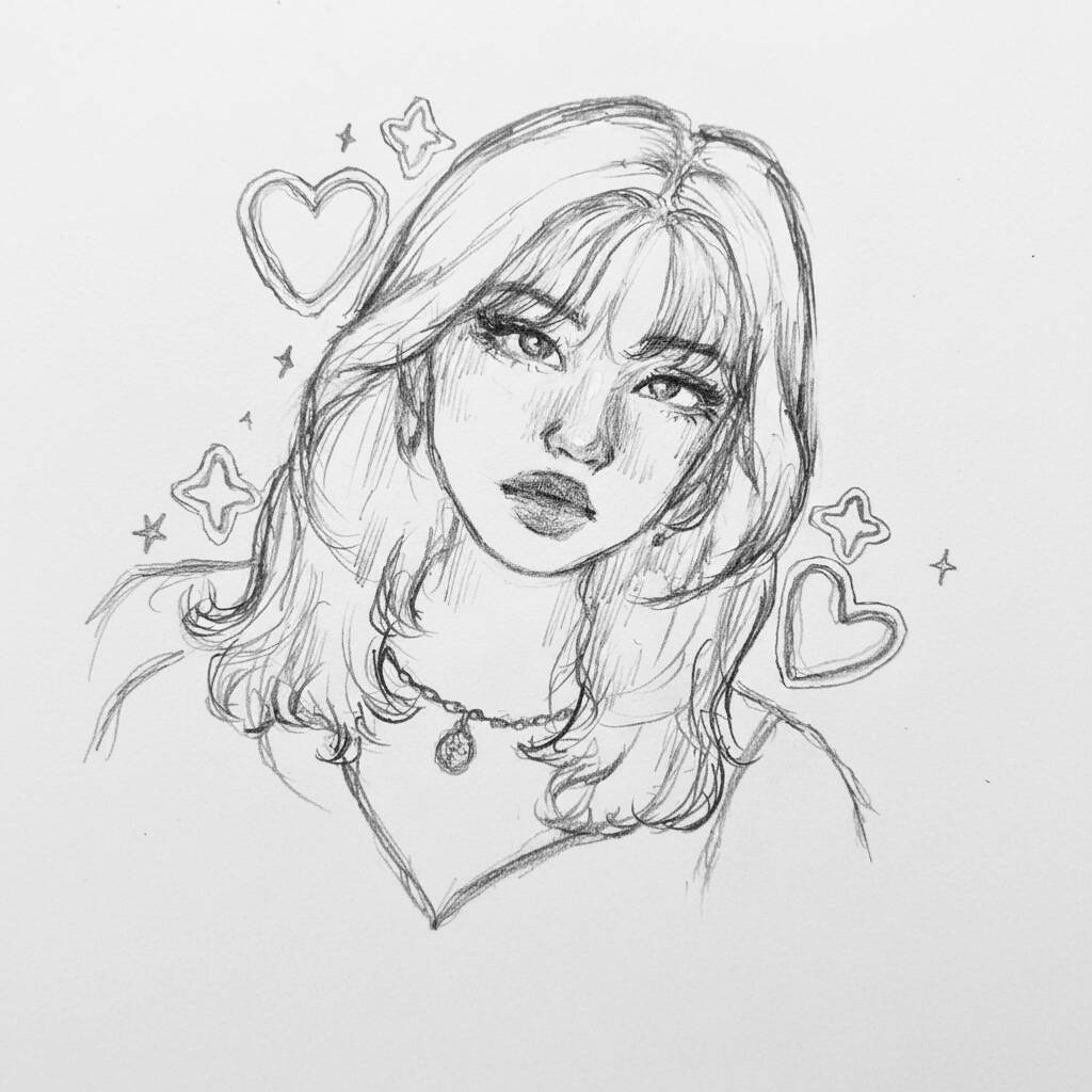 Cute drawing of a young girl with heart details, ideal for practicing your artistic skills.