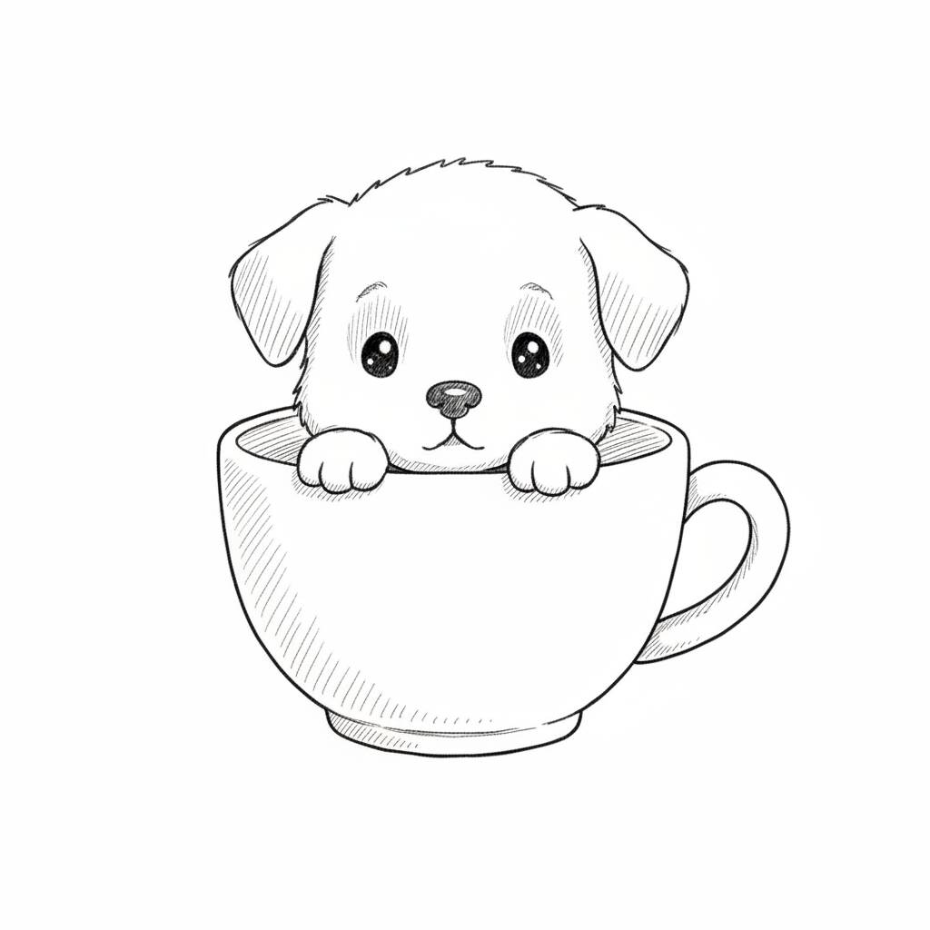 An adorable drawing of a dog in a cup, perfect for those looking for creative drawing ideas.