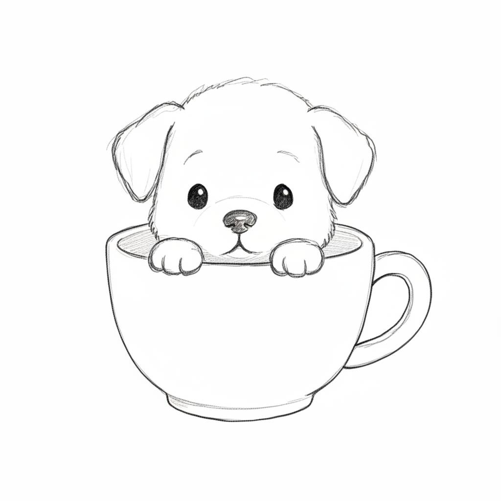 An adorable image of a dog in a cup, ideal for those looking for fun drawing ideas.
