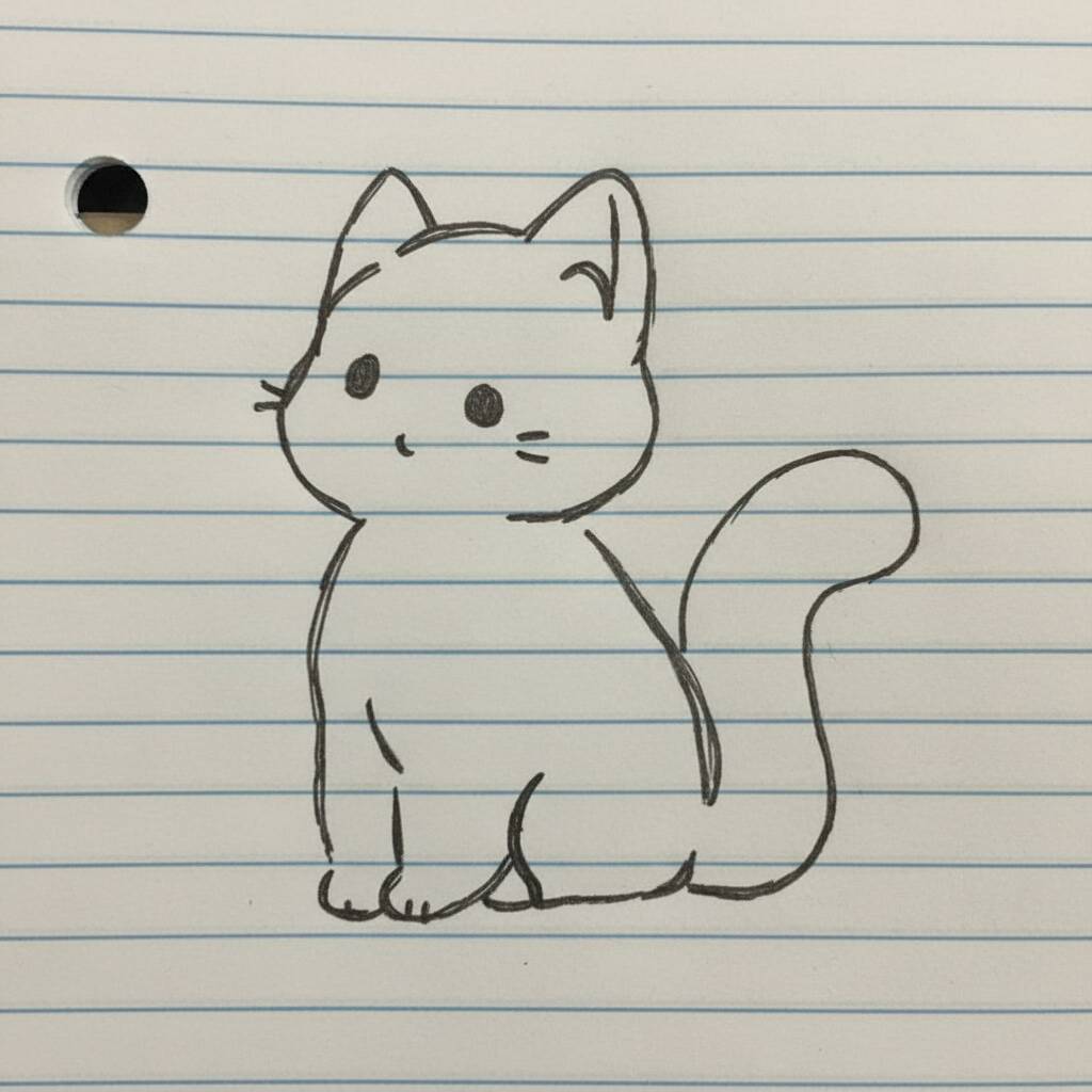 A simple and adorable drawing of a kitten, perfect for anyone who loves drawing.