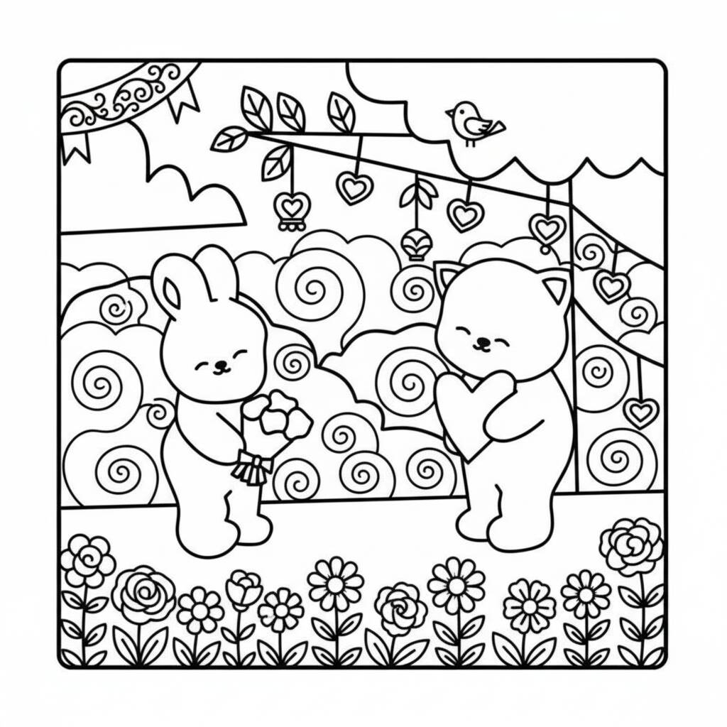 Start » Coloring Pages » Cozy Friends coloring page with rabbit and bear