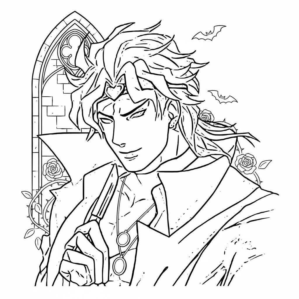Coloring page of a male anime character, ideal for fans of art and entertainment.