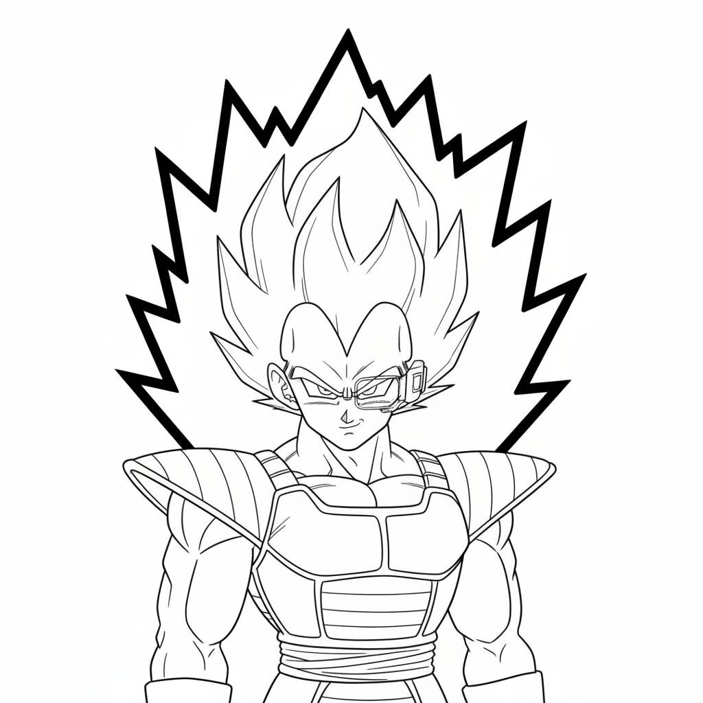 Coloring pages with the character Vegeta from the anime, ideal for Dragon Ball fans.