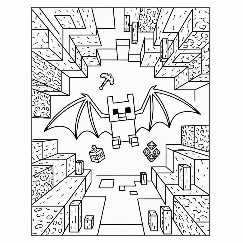 A fun coloring page with a bat from the Minecraft universe, perfect for fans of the game.