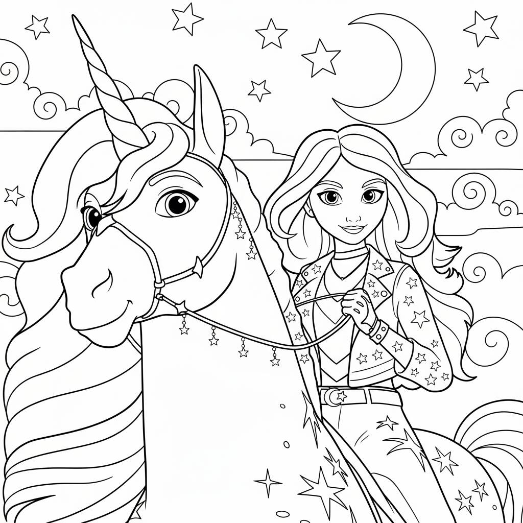 An enchanting coloring page with an adorable unicorn sleeping in the clouds, perfect for stimulating children's creativity.