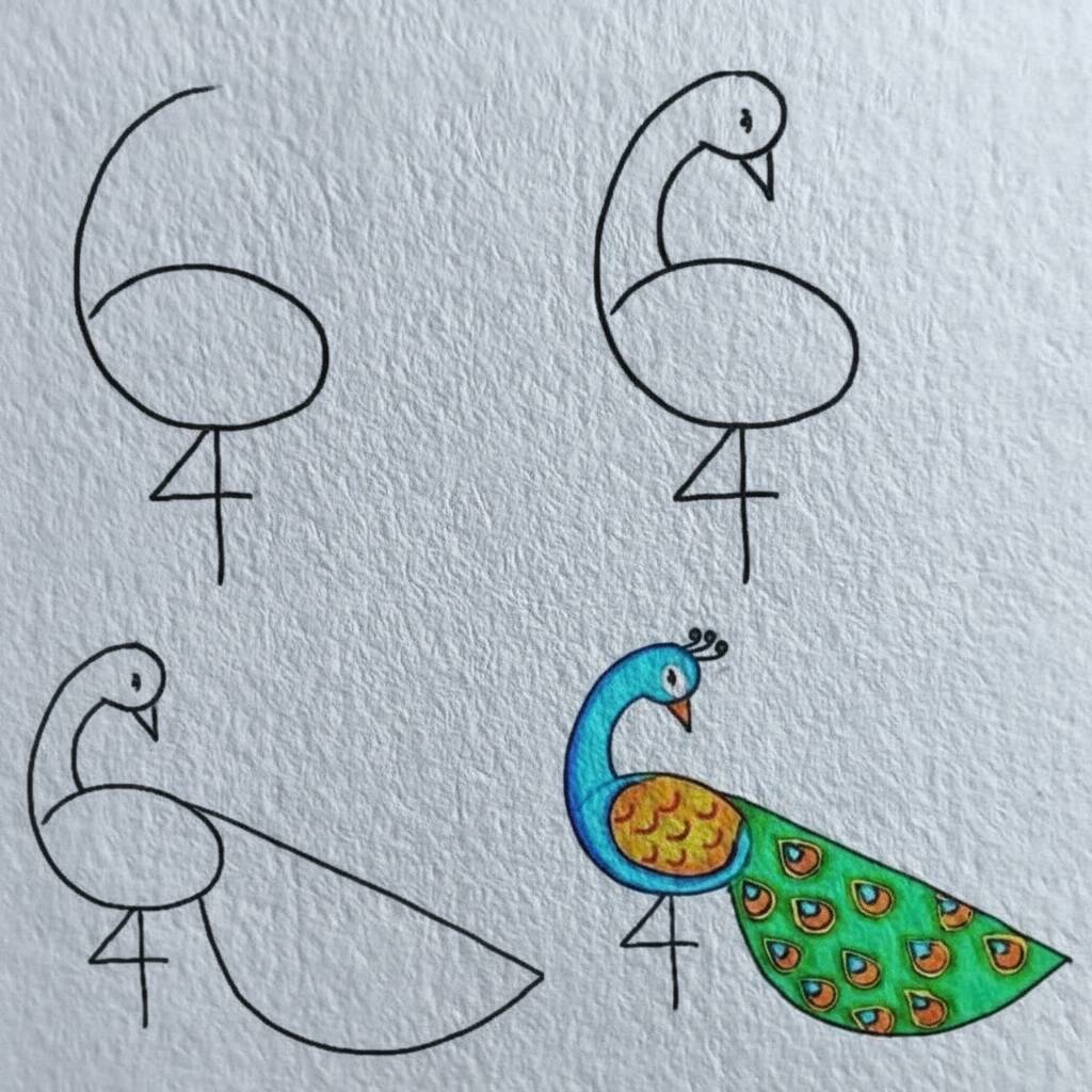 Easy Drawing: how to draw a peacock step by step