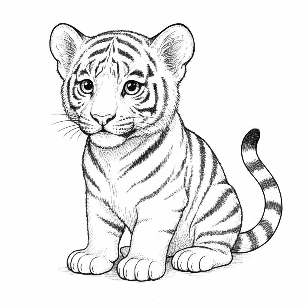 Easy Drawing: drawing of a tiger cub Coloring Page