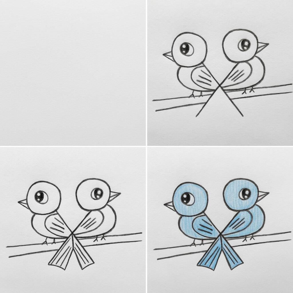 Start » Coloring Pages » Easy Drawing: two cute birds in a tree