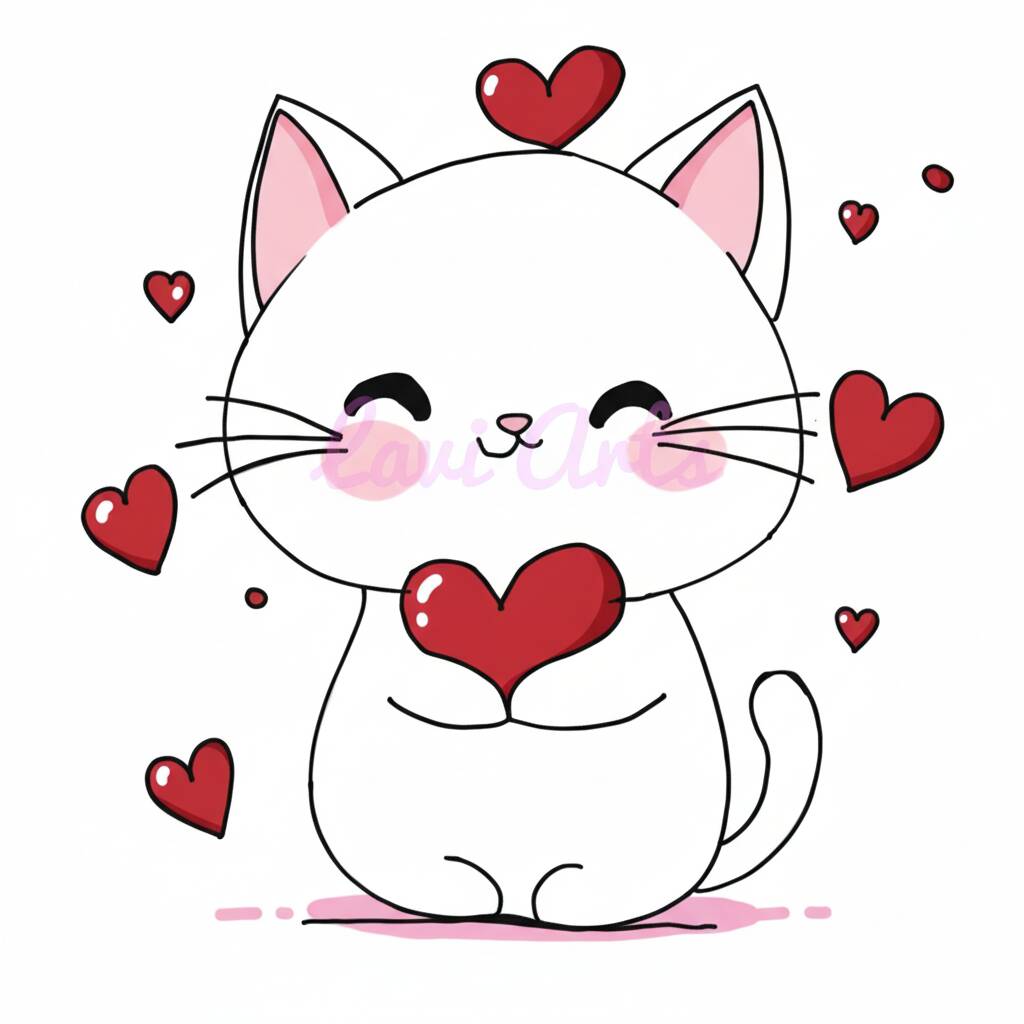 Desenho Fácil: Gato Fofo com Corações para Colorir
