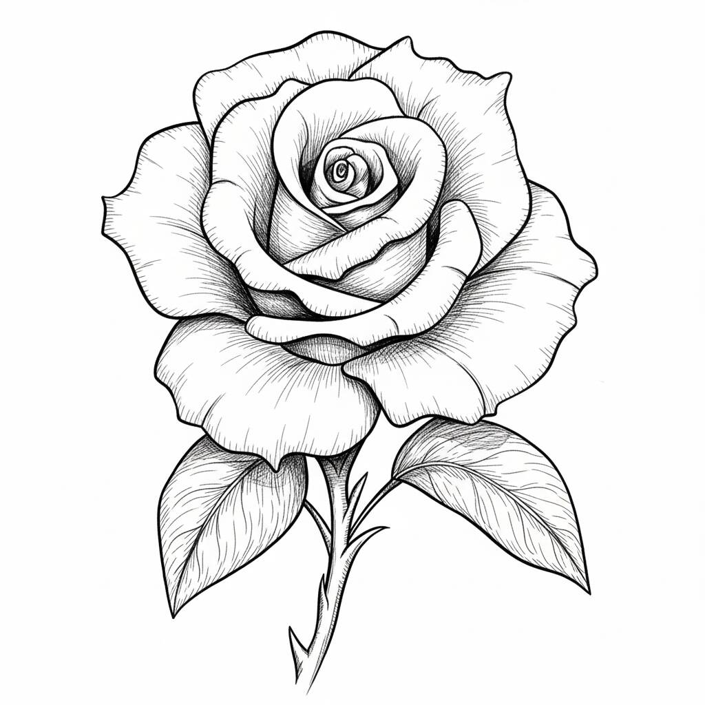Coloring page with a pretty rose design, ideal for children and adults who love art and flowers.