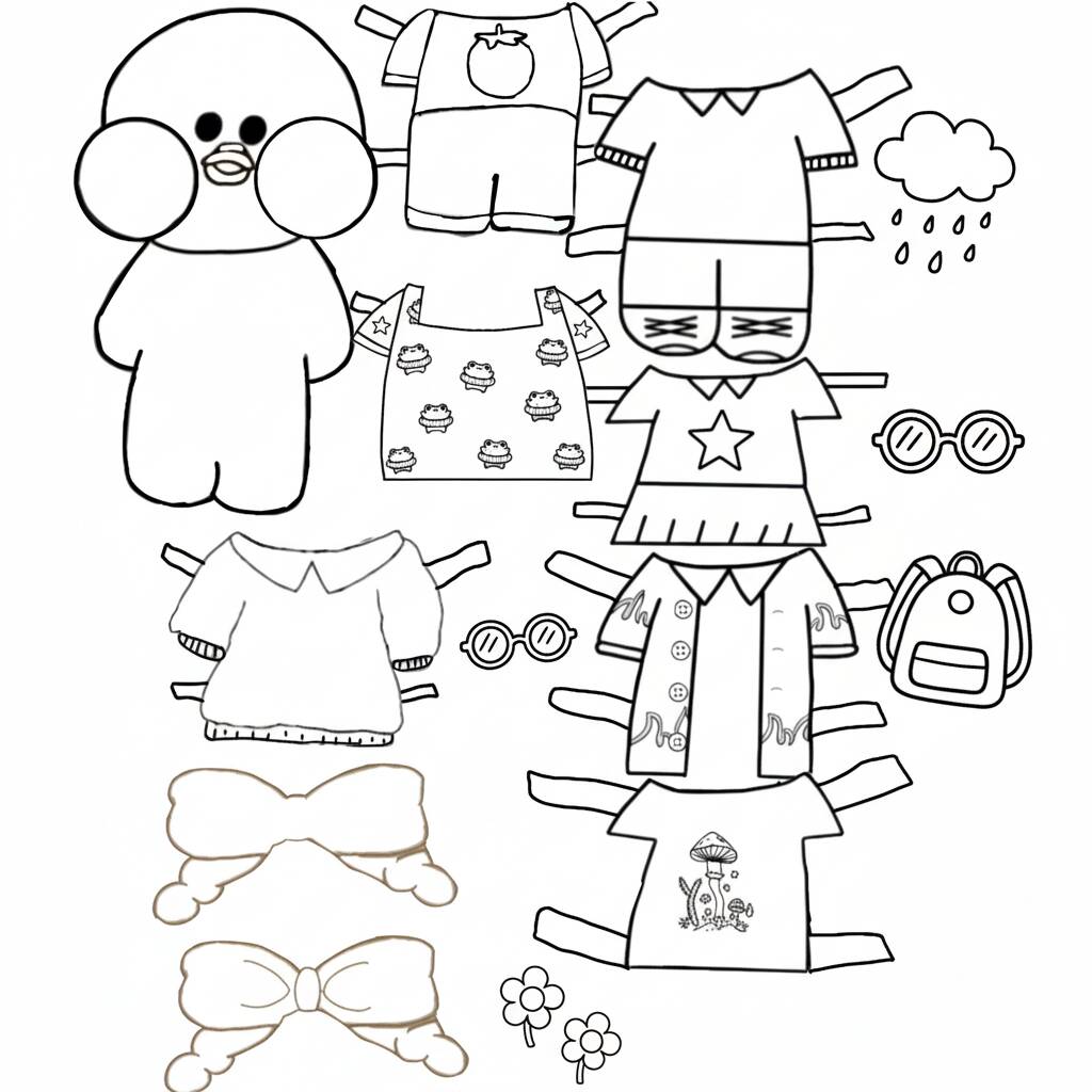 Have fun coloring this Paper Duck drawing with various clothes and accessories. Ideal for printing and using as a creative activity.
