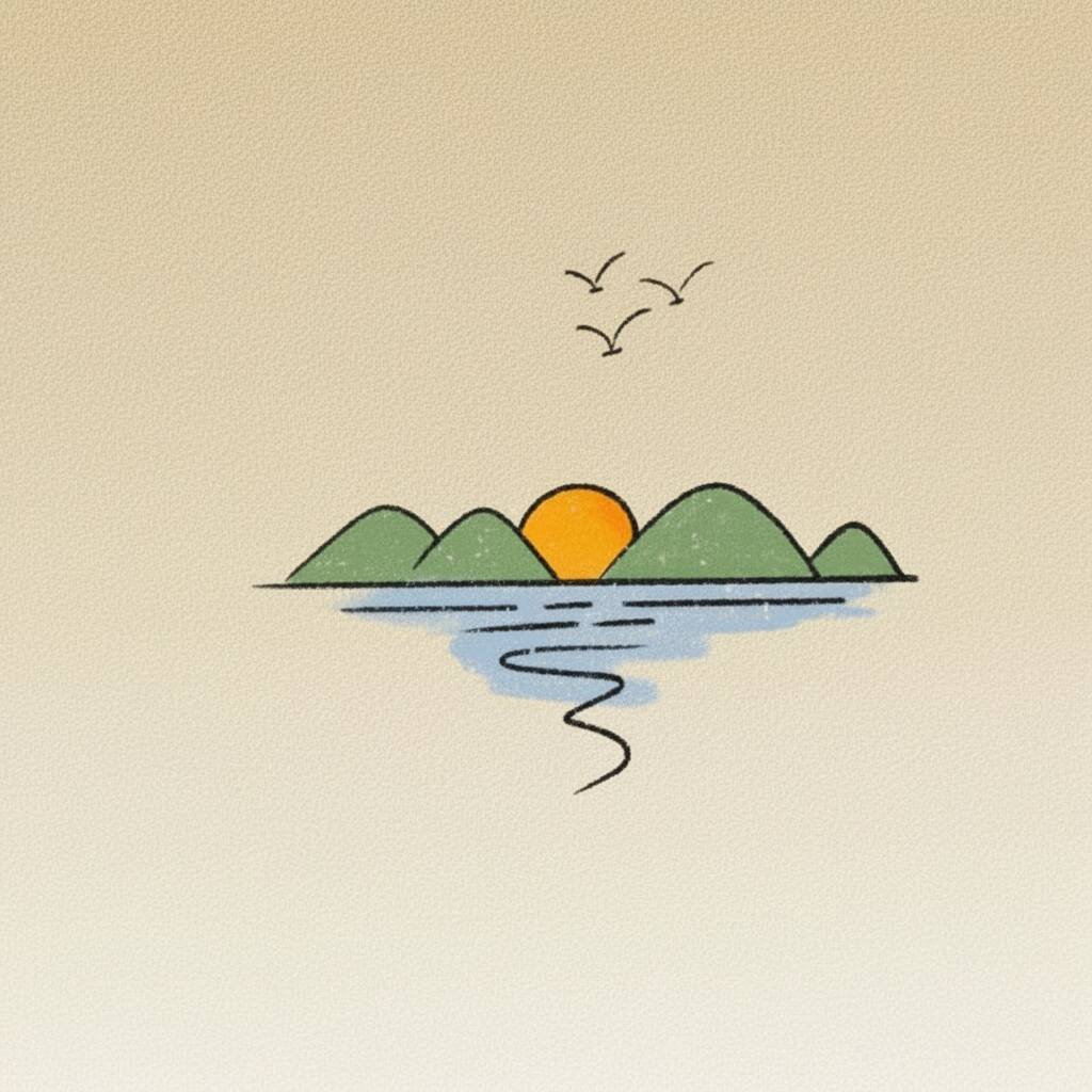 Doodles to Draw: serene landscape design with rising sun and mountains to draw