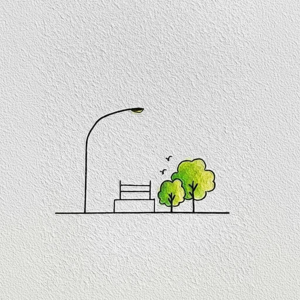 Doodles to Draw: drawing of a park with bench and trees to draw