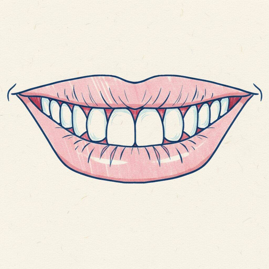 Ahora que has definido la forma básica de los dientes, es hora de dibujar la boca. Comience dibujando una línea curva suave en la parte superior para representar el labio superior y una línea similar en la parte inferior para el labio inferior. Las puntas de la boca se pueden elevar ligeramente para dar una apariencia más natural. Recuerda mantener las líneas claras, ya que aún puedes ajustarlas en los siguientes pasos.