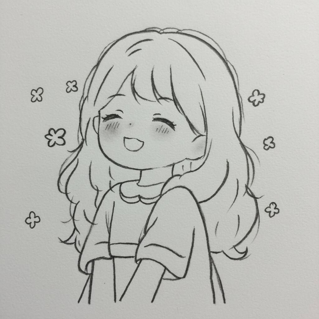 Cosas para dibujar: dibujo de una niña sonriente con flores.