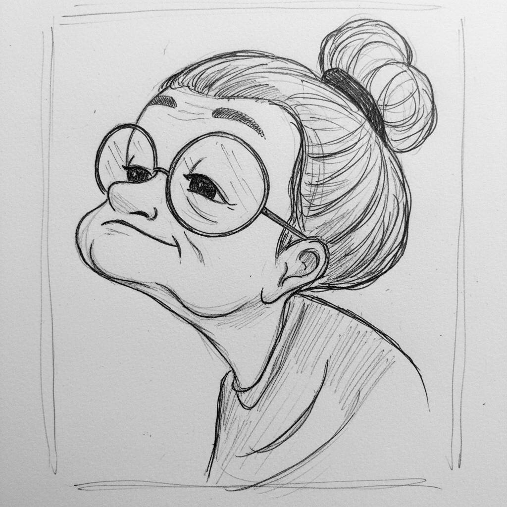 Cosas para dibujar: divertido dibujo de una abuela con gafas