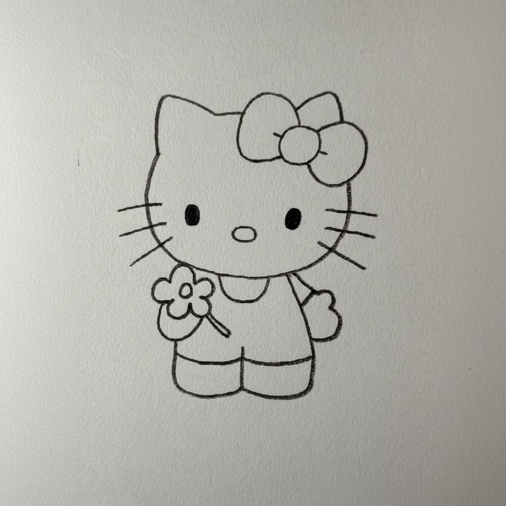 Cosas para dibujar: lindo dibujo de Hello Kitty sosteniendo una flor