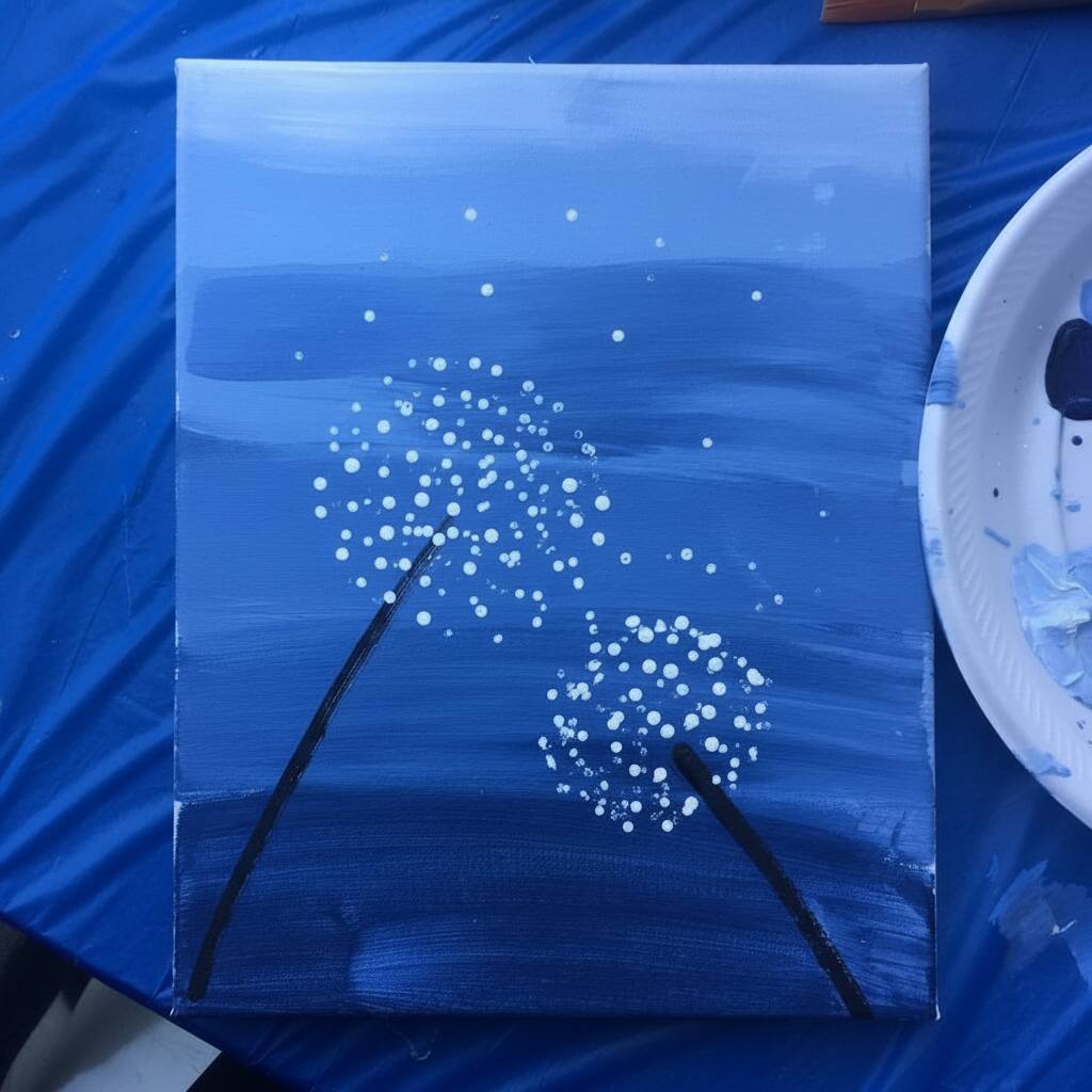 Cosas para pintar: dibujo de flores blancas sobre fondo azul.