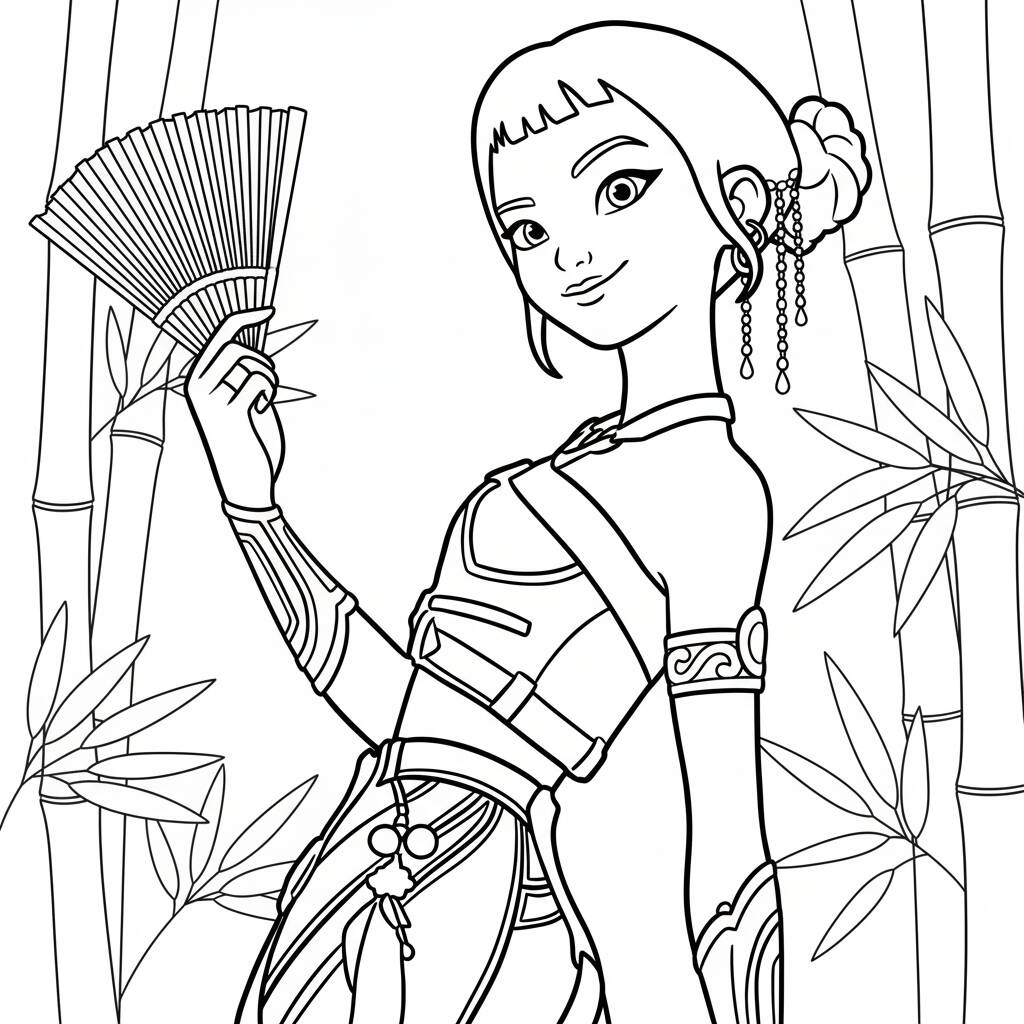 Dibujo para colorear de Guerreiras do K-Pop con estilo elegante