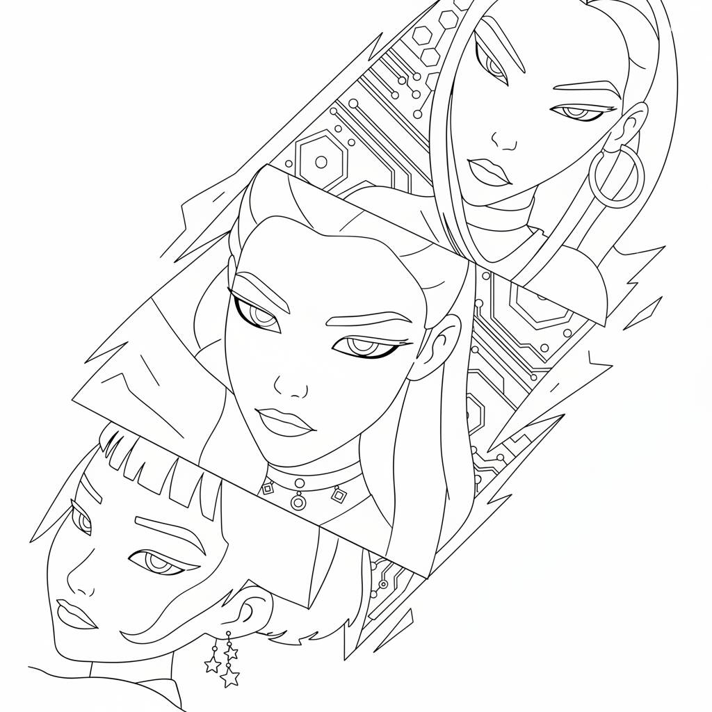 Dibujo para colorear de Guerreiras do K-Pop con estilo futurista