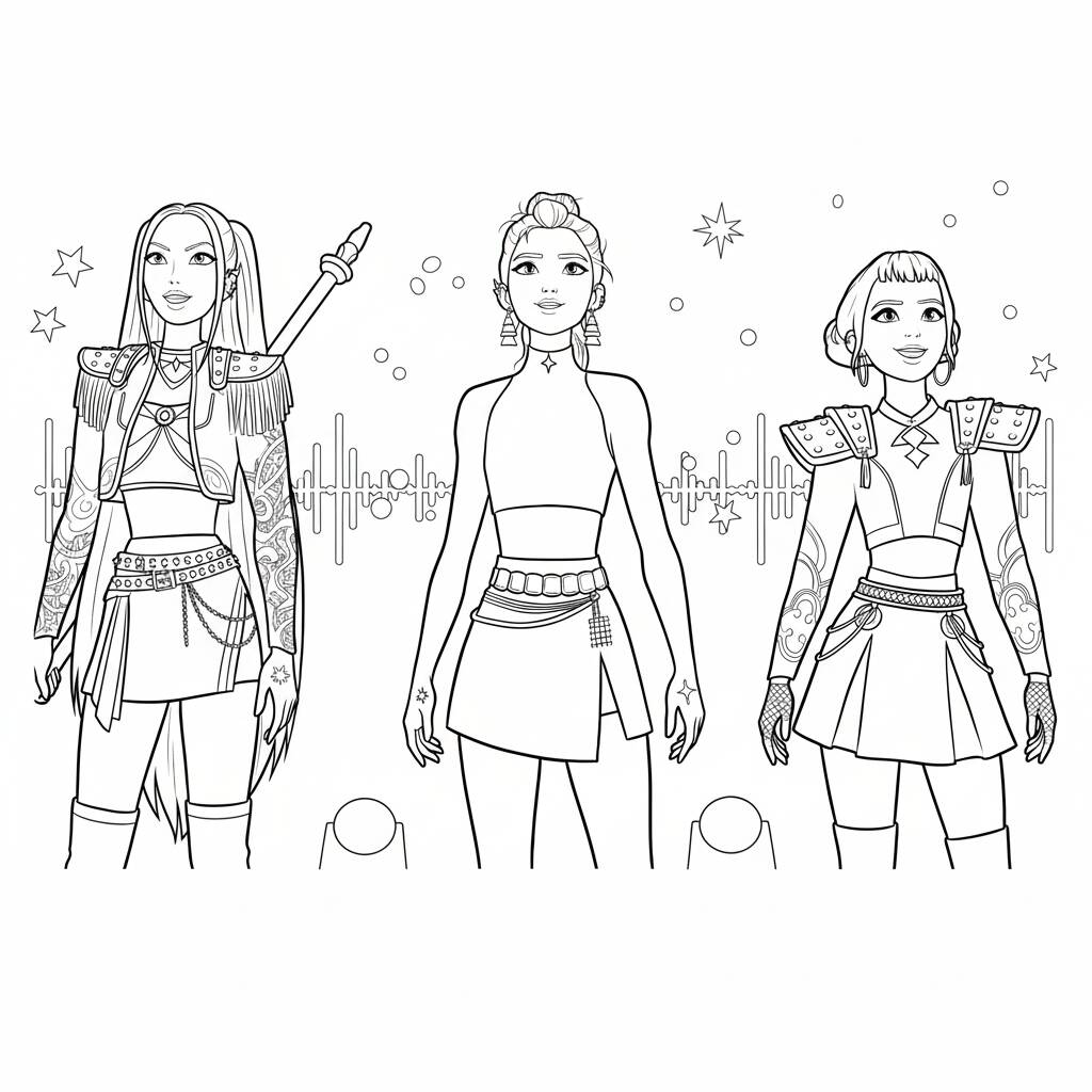 Comenzar » Dibujos para colorear » Dibujo de Guerreros K Pop en acción para colorear