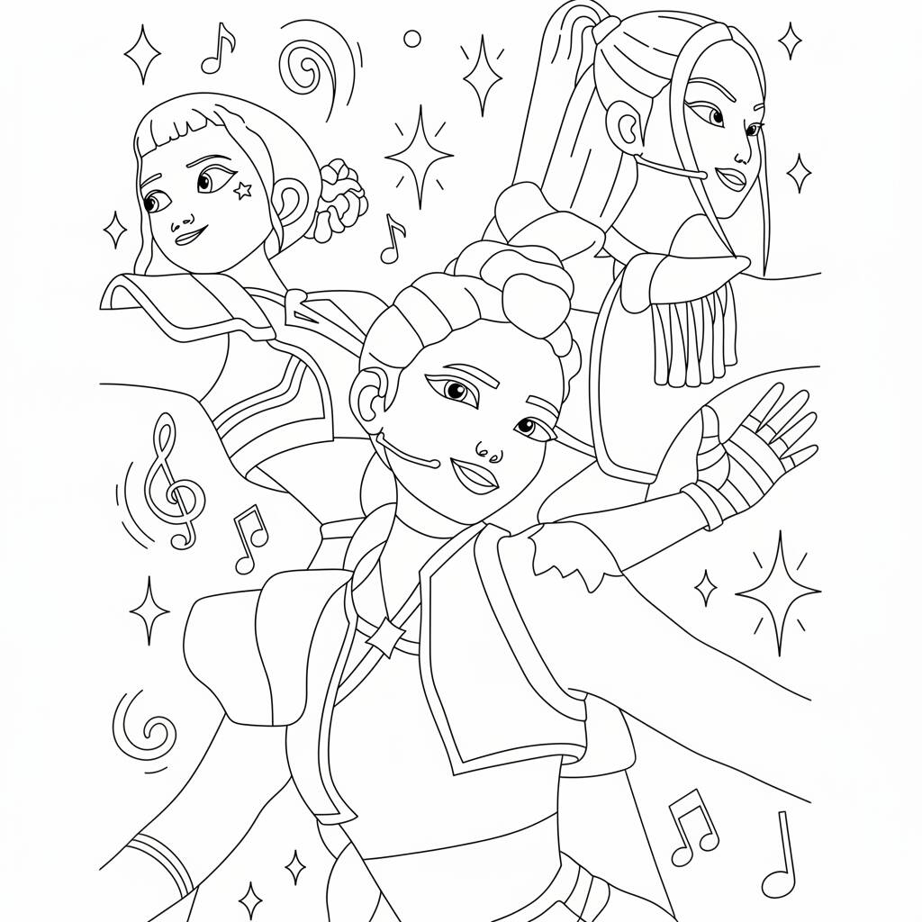 Dibujo para colorear de Guerreiras do K-Pop en acción (kpop Demon Hunters)