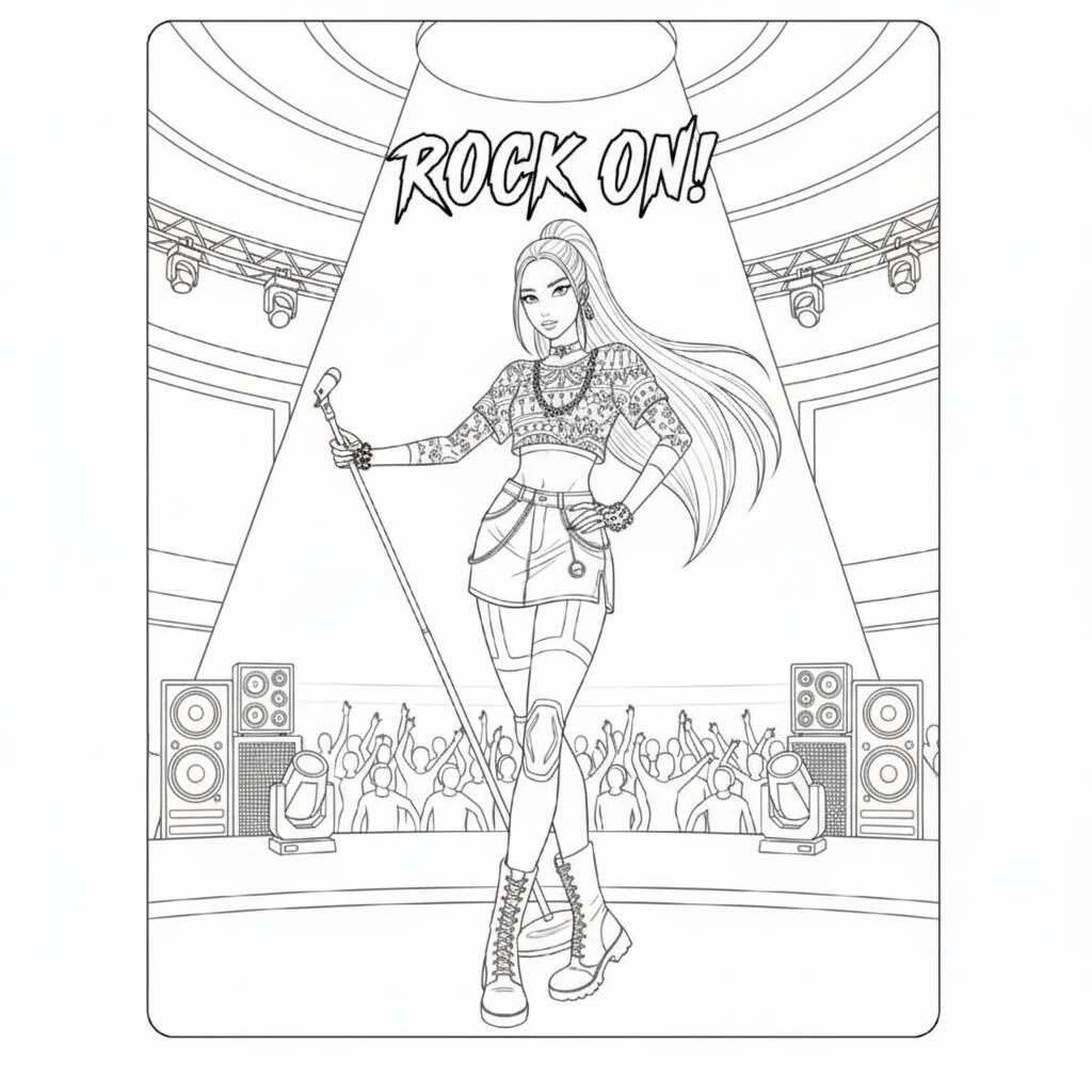 Dibujo para colorear de Guerreiras do K-Pop en show (kpop Demon Hunters)