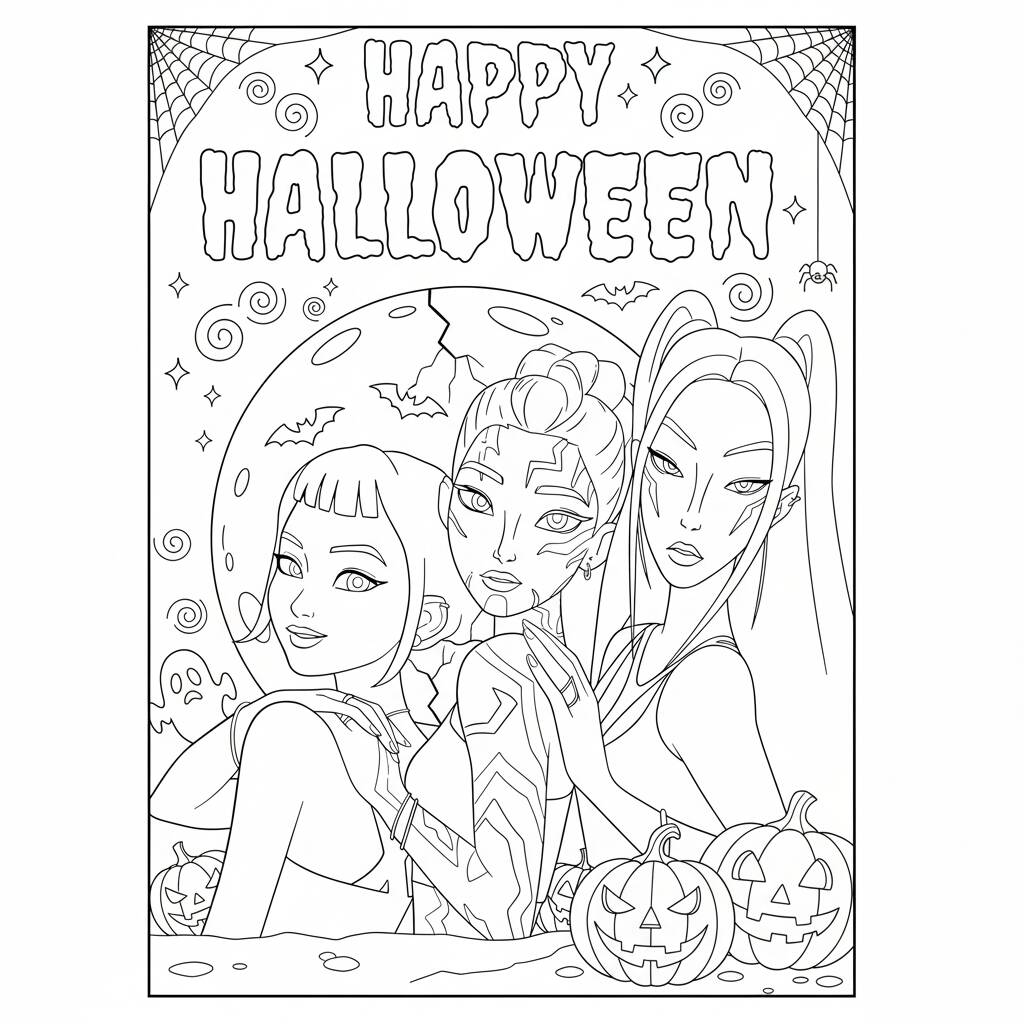 Dibujo para colorear de Guerreiras do K-Pop con temática de Halloween