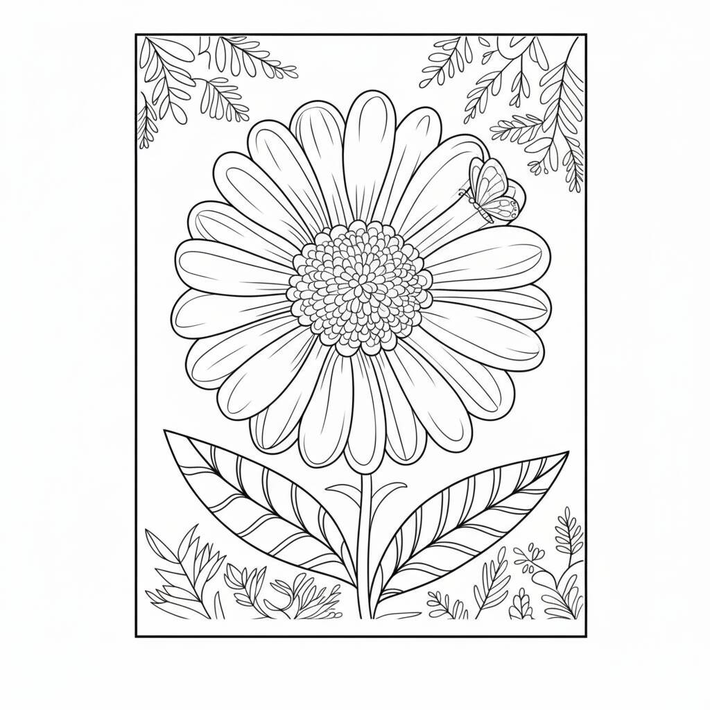 Un dibujo para colorear con preciosas margaritas y detalles naturales, perfecto para relajar y estimular la creatividad.
