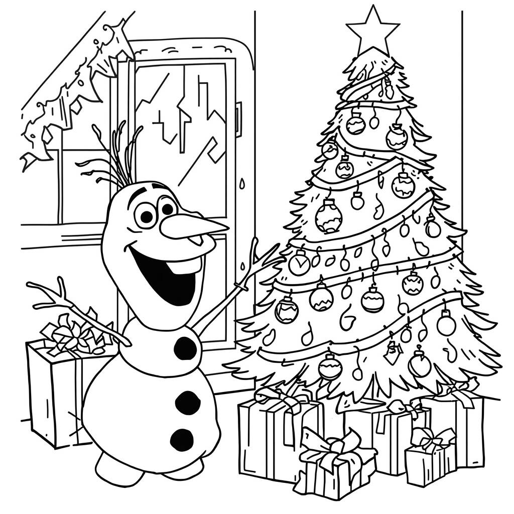 El árbol de Navidad, lleno de adornos, puede ser un gran punto culminante en tu creación. Utiliza diferentes verdes para las hojas del árbol y, si quieres, añade un toque de brillo con un poco de amarillo en algunas zonas. No olvides agregar un fondo festivo, como copos de nieve cayendo o una noche estrellada, para completar la mágica escena invernal. ¡Diviértete coloreando y da vida a la alegría de la Navidad con Olaf y su encantador árbol!
