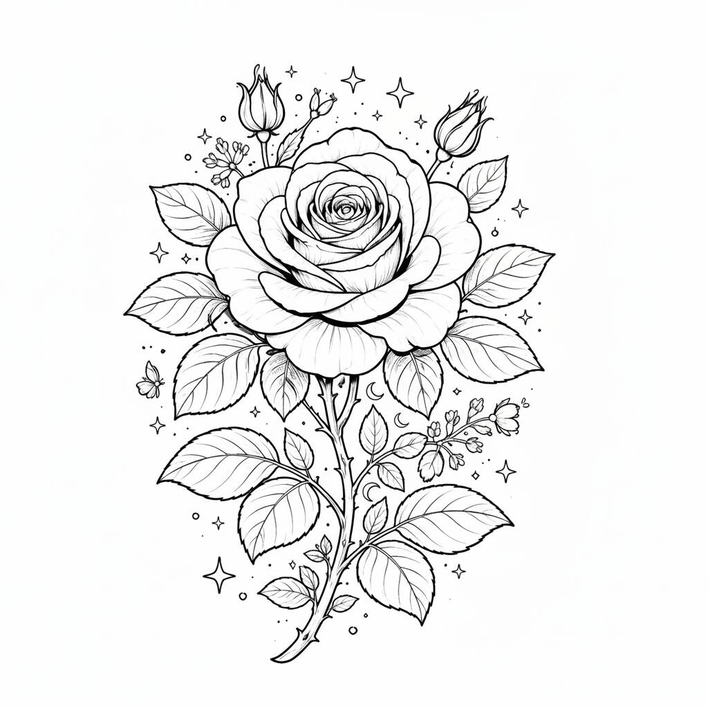 Página de colorir com um belo desenho de rosa, perfeito para amantes de flores.