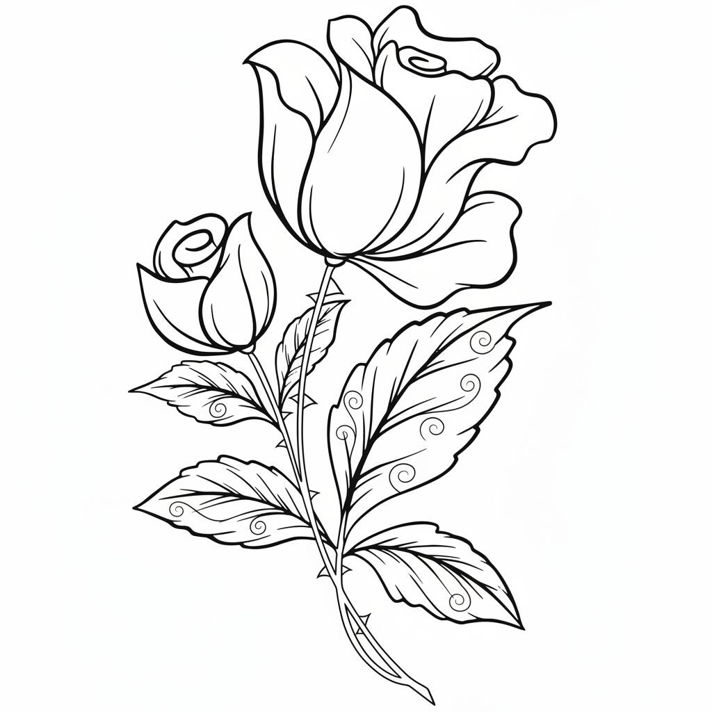 Una hermosa página para colorear con rosas detalladas, perfecta para todas las edades.