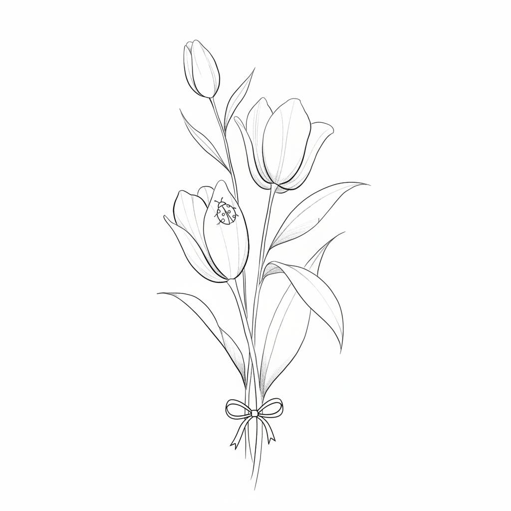 Un precioso dibujo para colorear con tulipanes, perfecto para estimular la creatividad y relajarse.