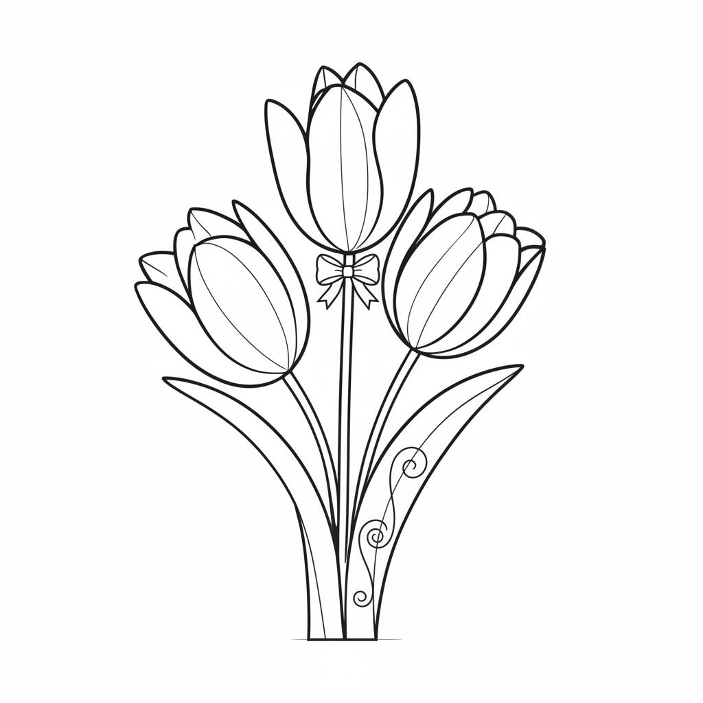 Página de colorir com um bonito desenho de tulipas, ideal para crianças e adultos que adoram flores.