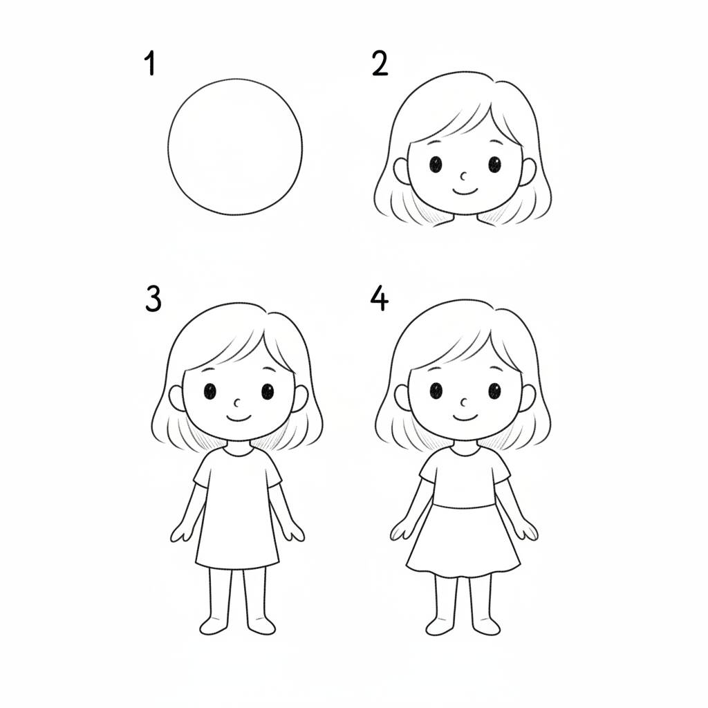 Comenzar » Dibujos para colorear » Dibujo Fácil: Cómo dibujar una niña paso a paso