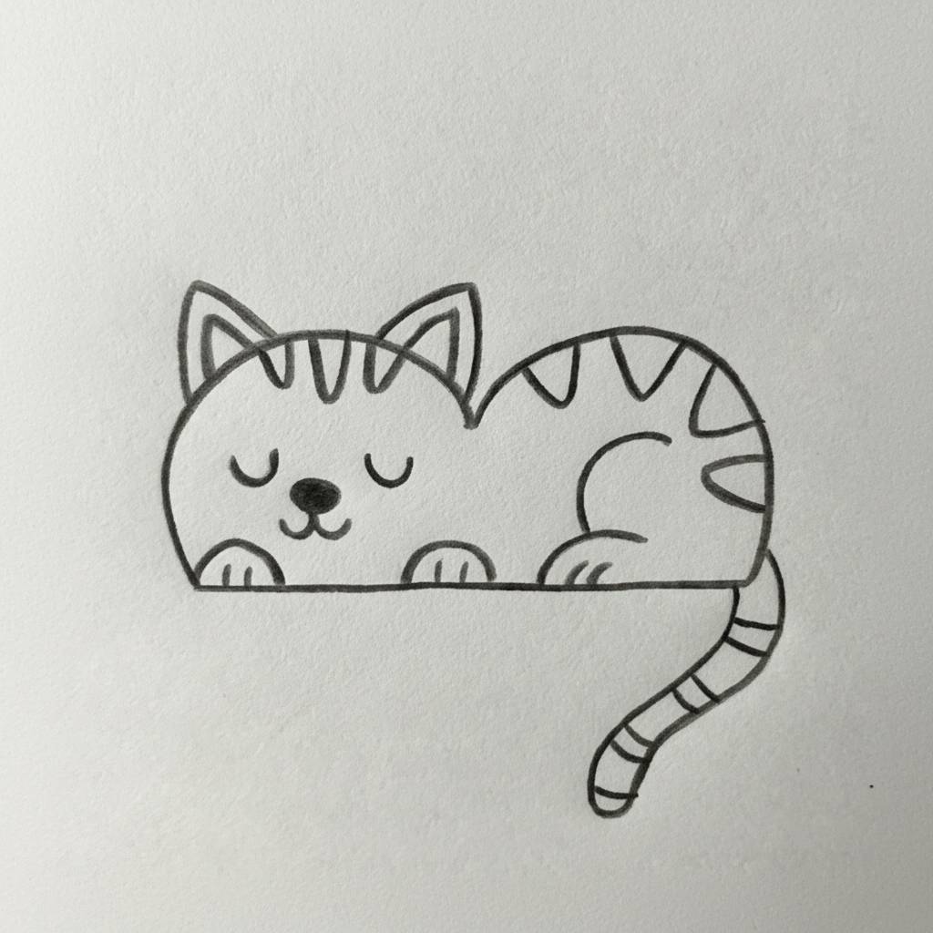 Dibujo Fácil: lindo gato durmiendo para colorear