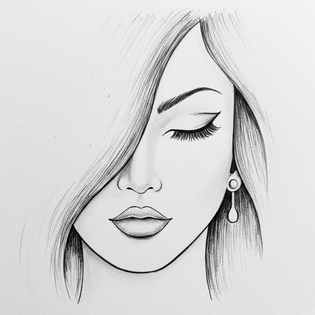 Página de colorir com um desenho fácil de um rosto feminino elegante, ideal para relaxar e desenvolver a criatividade.