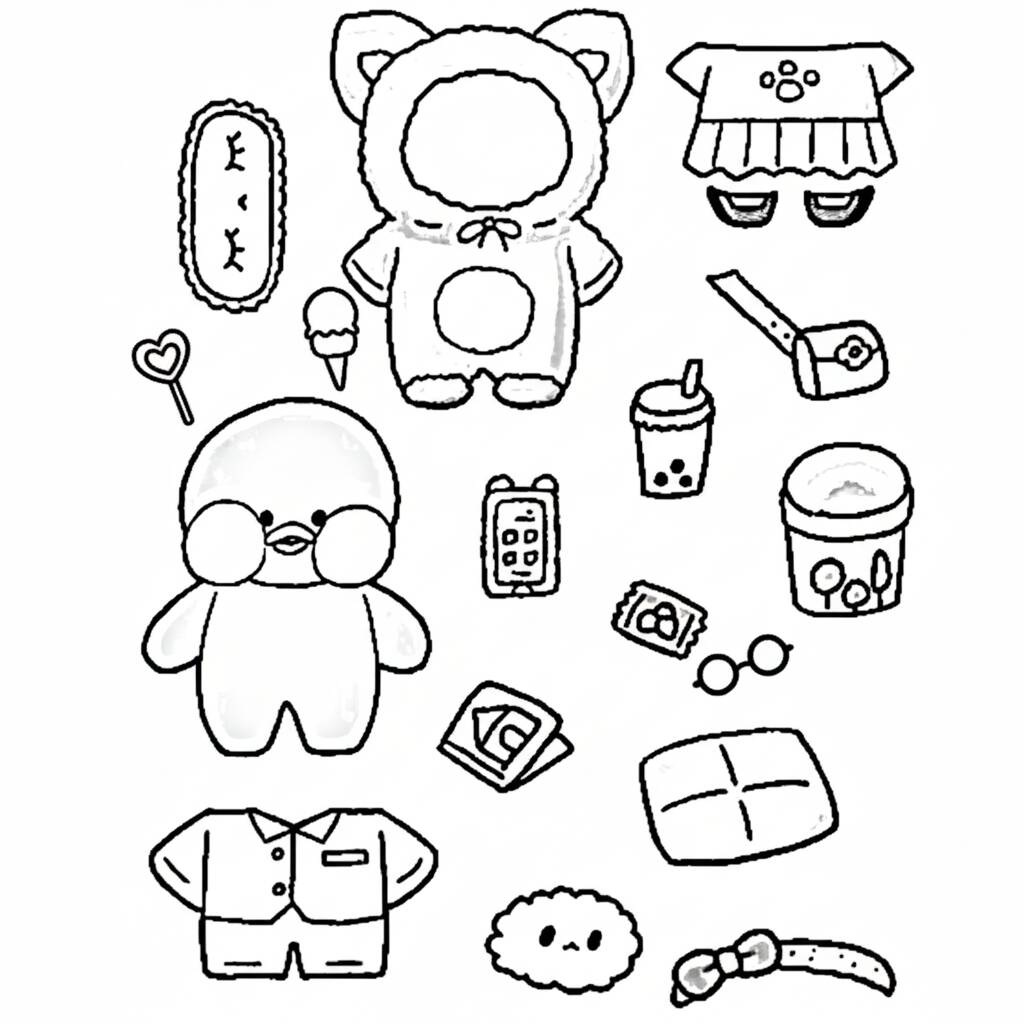 Dibujo de Pato de Papel con lindos objetos para colorear (Imprimir)