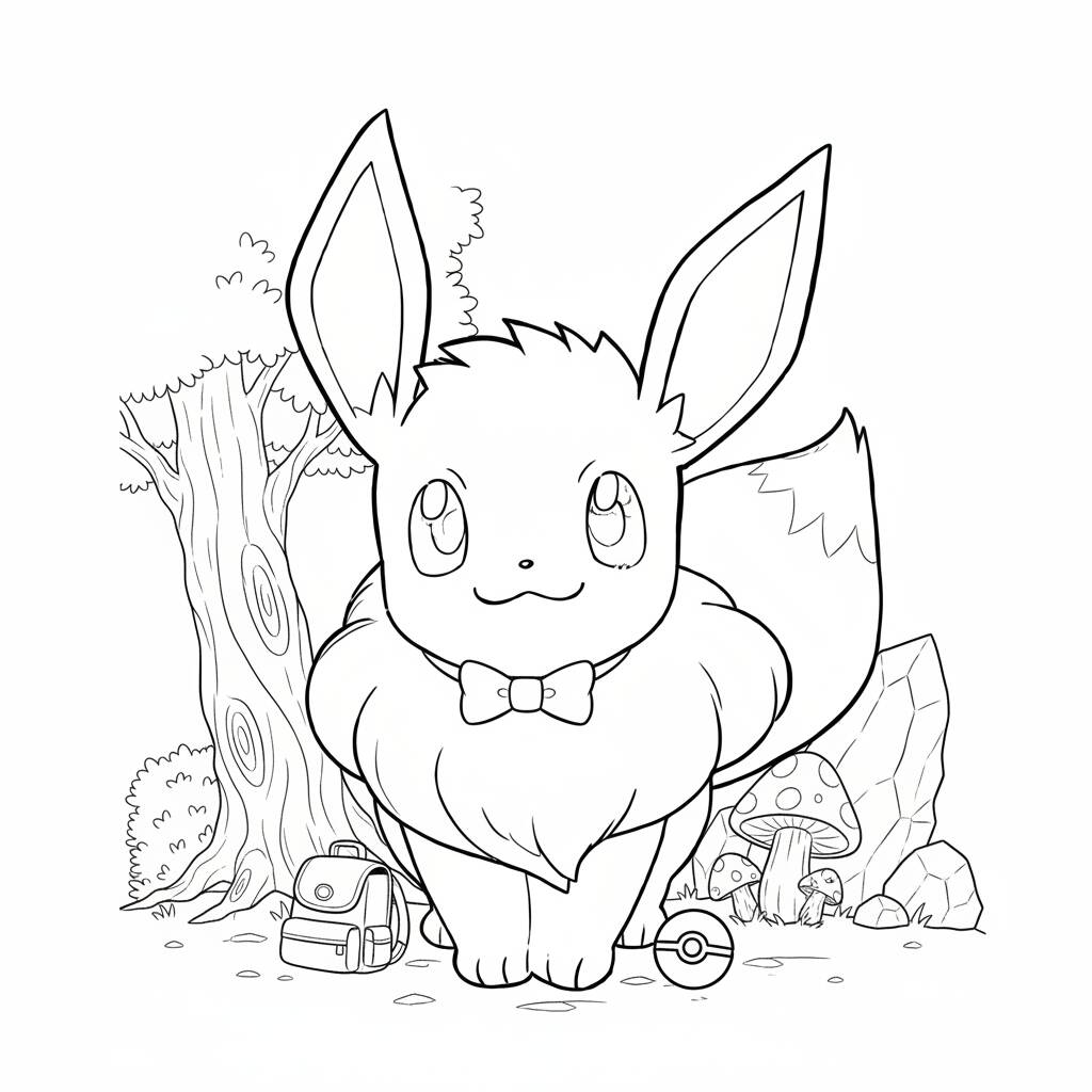 Diviértete coloreando este adorable dibujo de Pokémon Eevee en un entorno encantador.