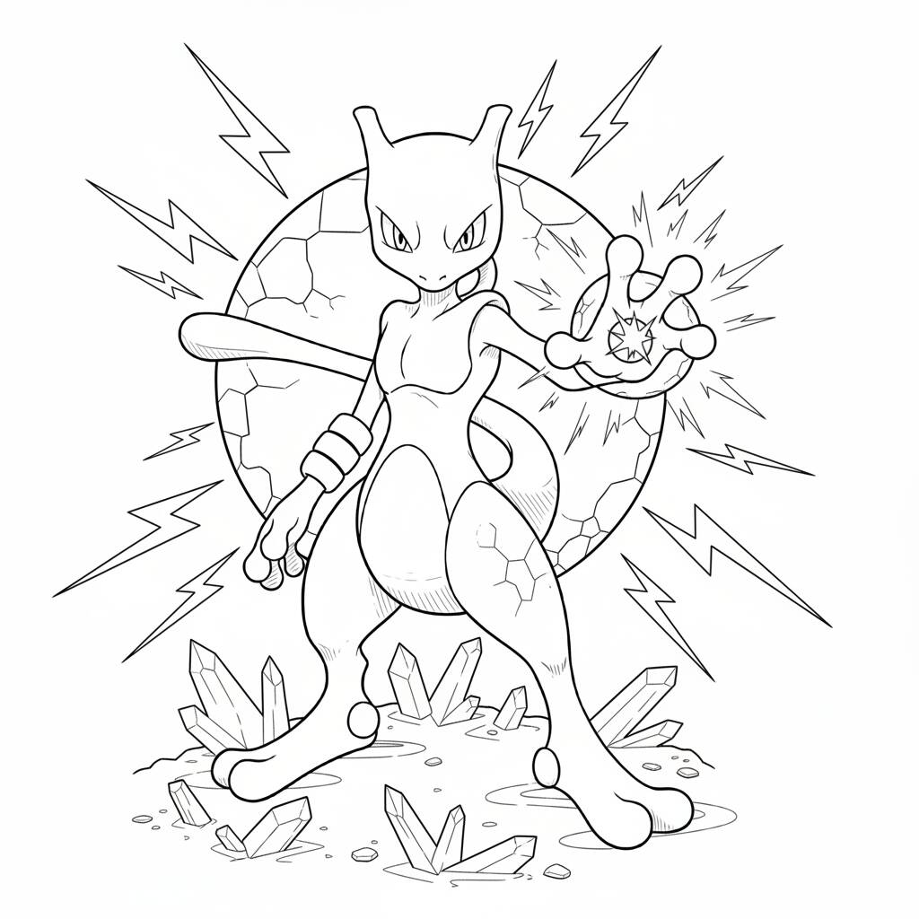Página de colorir do Pokémon Mewtwo, perfeita para fãs de todas as idades.