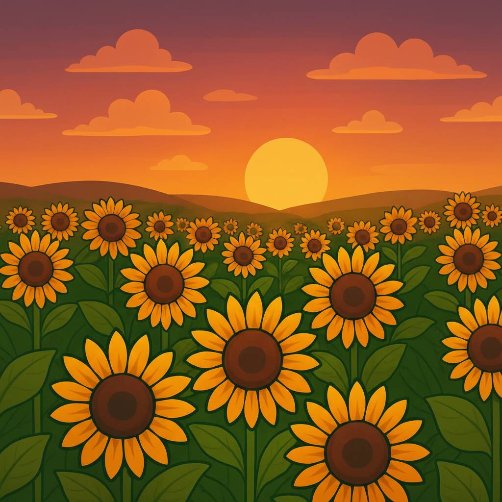 Comenzar » Dibujos para colorear » Paisaje para Dibujar: dibujando un hermoso paisaje con girasoles al atardecer