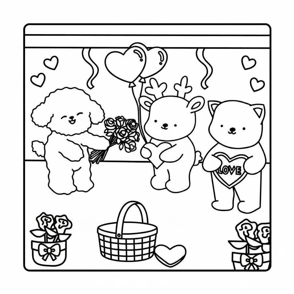 Uma divertida página de colorir do tema Cozy Friends, perfeita para expressar amor e amizade.