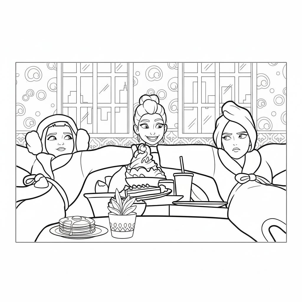 Início » Desenhos Para Colorir » Desenho das Guerreiras do K Pop em um momento divertido para colorir