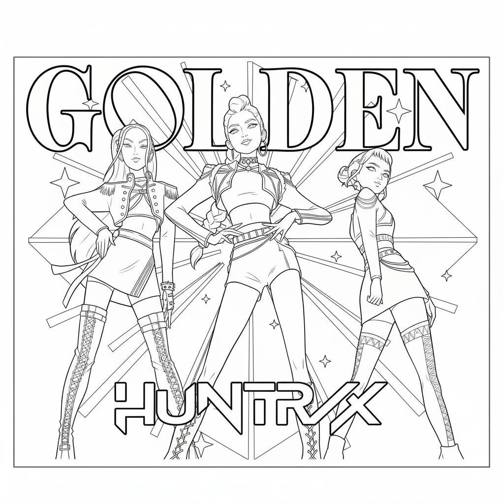 Colorir as Guerreiras do K-Pop Golden Huntrix com este incrível desenho para soltar a criatividade.