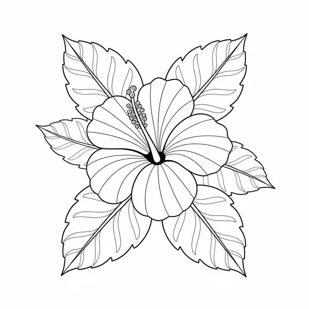 Uma linda página para colorir com um hibisco detalhado, perfeita para relaxar e estimular a criatividade.