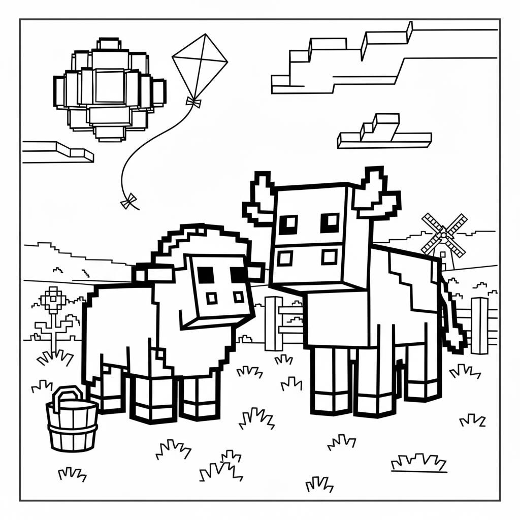 Início » Desenhos Para Colorir » Desenho de Minecraft com ovelha e vaca para colorir