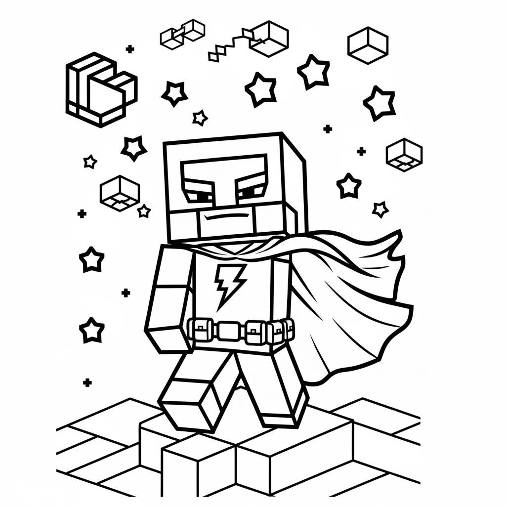 Uma divertida página para colorir com um super-herói do universo Minecraft, perfeita para fãs de todas as idades.