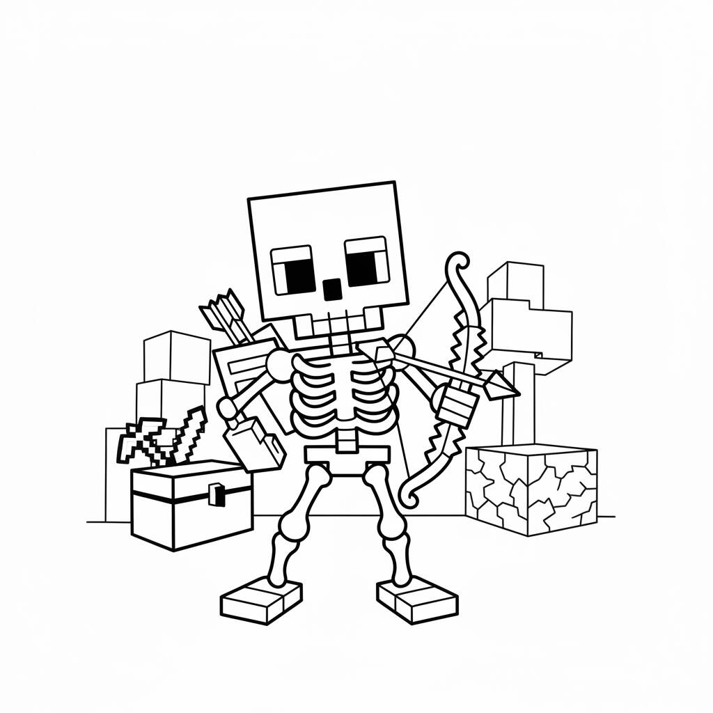 Coloração divertida de um esqueleto do Minecraft, ideal para fãs do jogo.