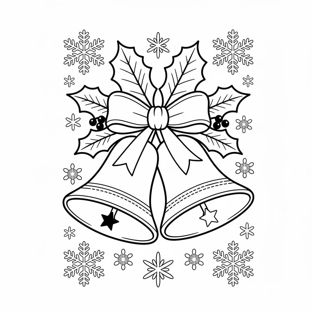 Página de colorir natalina com sinos decorados e um laço, perfeita para atividades festivas.